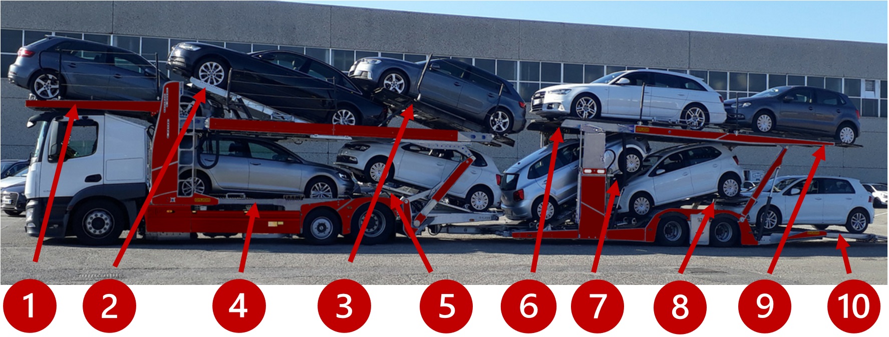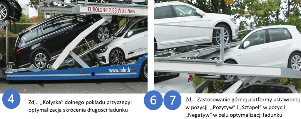 Tylna część ruchomej podłogi górnego pokładu przyczepy („Sztapel”) – hydrauliczny układ unoszenia w zakresie góra-dół z możliwością zwiększenia / zmniejszenia długości platformy. Możliwe ustawienie pojazdu w pozycji „Negatyw”/„Pozytyw”