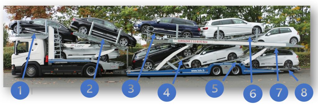„Kołyska”tylny dolny układ unoszenia – hydrauliczny układ unoszenia, służący do załadunku, w którym auto jest ustawione na zasadzie sztapla na dolnym pokładzie przyczepy. W tylnej części „kołyski” koła mocowane w przestawnych belkach z lekkiego stopu.