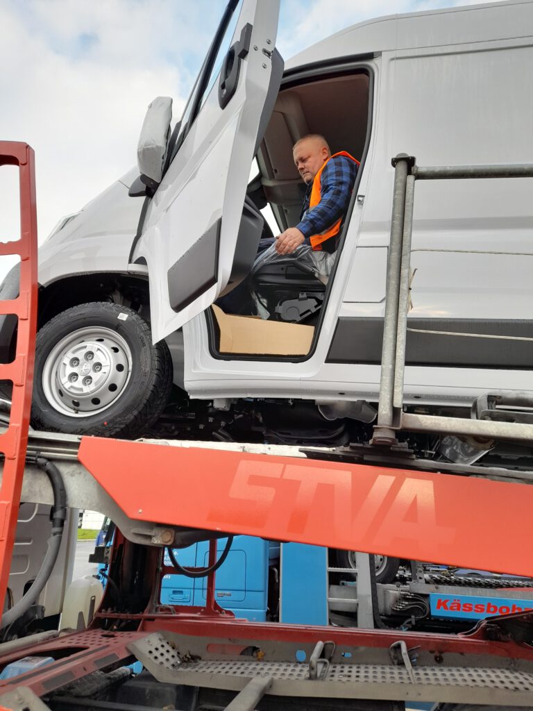 Użycie sztapli w zabudowach ze stałym pokładem pozwala na swobodne otwarcie drzwi kierowcy.