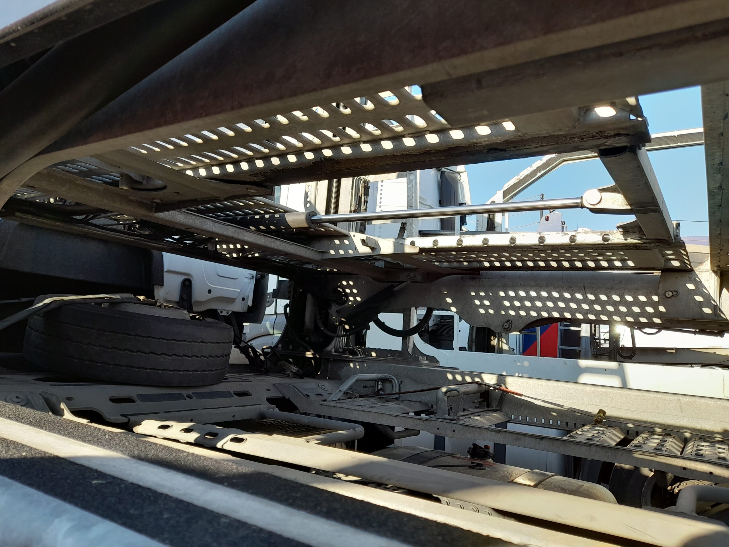 Cel próbnych załadunków: Ustalić procedurę bezpiecznego załadunku busów na ciągnik zabudowy Lohr 2.53 bez konieczności demontażu barier bezpieczeństwa.