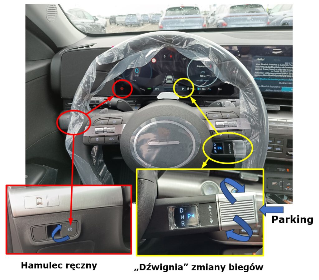 Umiejscowienie dźwigni zmiany biegów i hamulca ręcznego