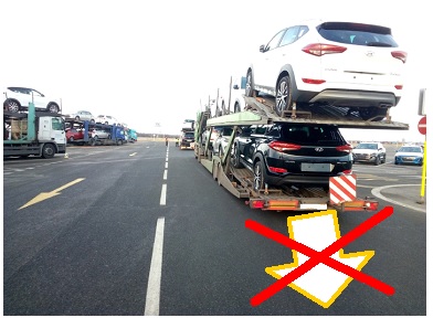 Kategoryczny zakaz cofania/ jazdy do tyłu autotransporterem na drodze dojazdowej przy dyspozytorni i w strefie załadunku a/t.
