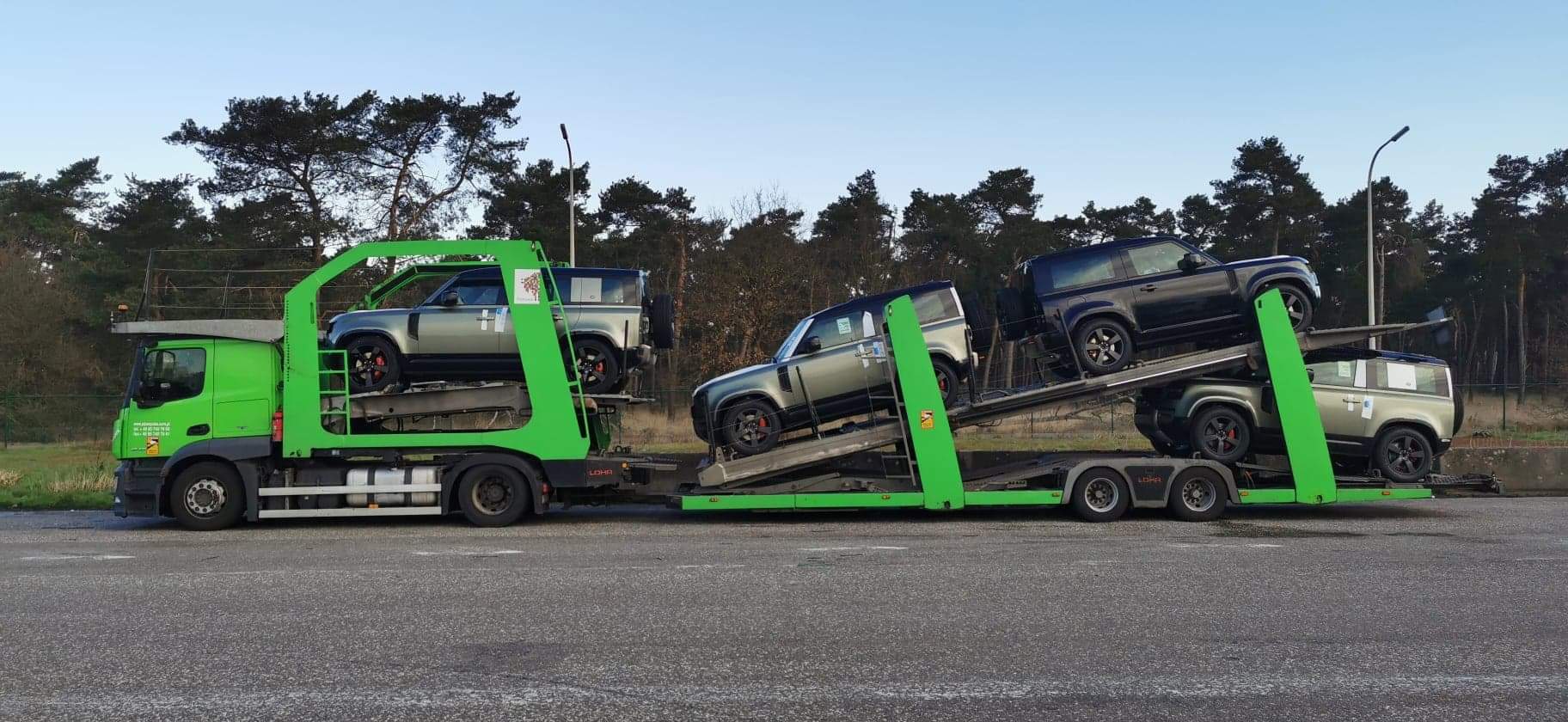 Ładując LR DEFENDER na zabudowy LOHR, pamiętaj, aby jadąc przez Niemcy zachować przepis LADESTUTZE (górny pokład zsunięty do max. długości 18,75 m)