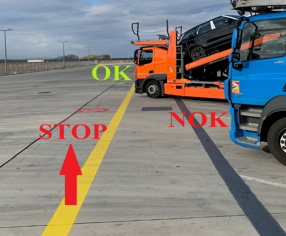 Zdj. Autotransporterem w rajce załadunkowej należy dojechać do linii oznaczonej żółtą barwą
