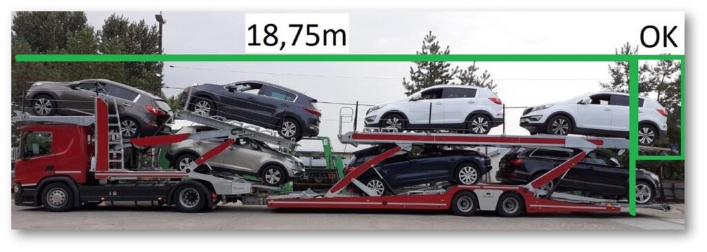 W przypadku autotransporterów rozporządzenie Ladestutze mówi o tym, żeby ostatni stały element zabudowy A/T nie przekraczał długości 18,75m liczonej od początku zespołu pojazdów