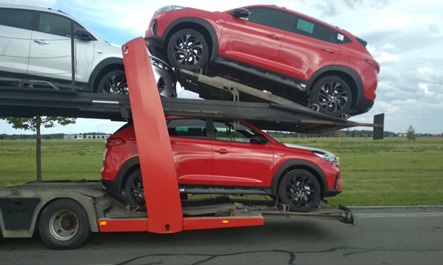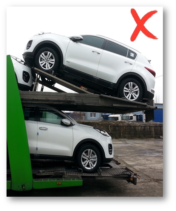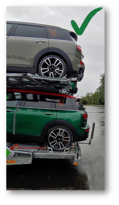 Samochód załadowany jako ostatni na górnym pokładzie przyczepy musi być na równi z pokładem lub wystawać po za, lecz nie dalej niż samochód na dolnym pokładzie lub dolna szuflada.