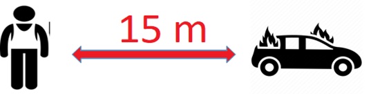 W przypadku pożaru aut elektrycznych oddalić się od auta na odległość co najmniej 15 m, zawiadomić straż pożarną i dyspozytora. W przypadku gdy pożar wystąpi na placu załadunkowym/rozładunkowym dodatkowo należy powiadomić obsługę placu