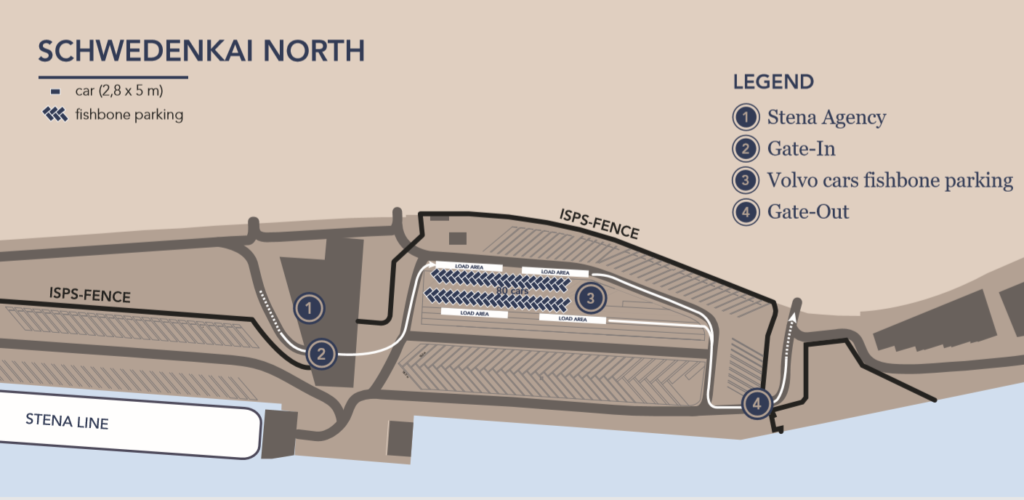 Plac otwarty jest 24/7 (przerwa na rozładunek promu – zakaz wjazdu od 9:00 do 10:00)