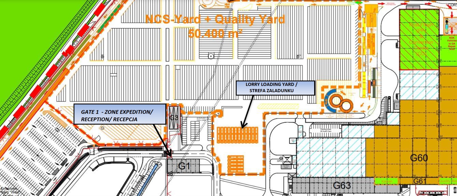 W strefie załadunku kierowca powinien używać kamizelki w kolorze POMARAŃCZOWYM.