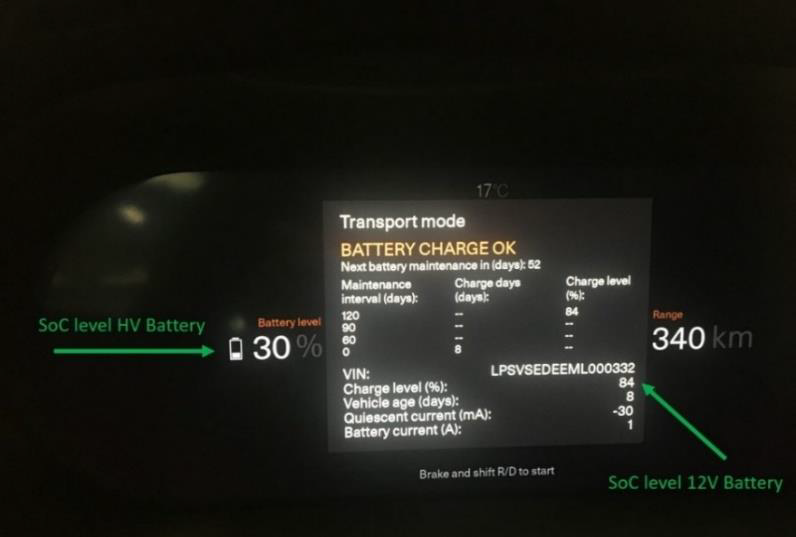 zdj. System w autach elektrycznych Volvo informuje nas o stanie naładowania baterii zarówno baterii rozruchowej 12V i baterii wysokonapięciowej