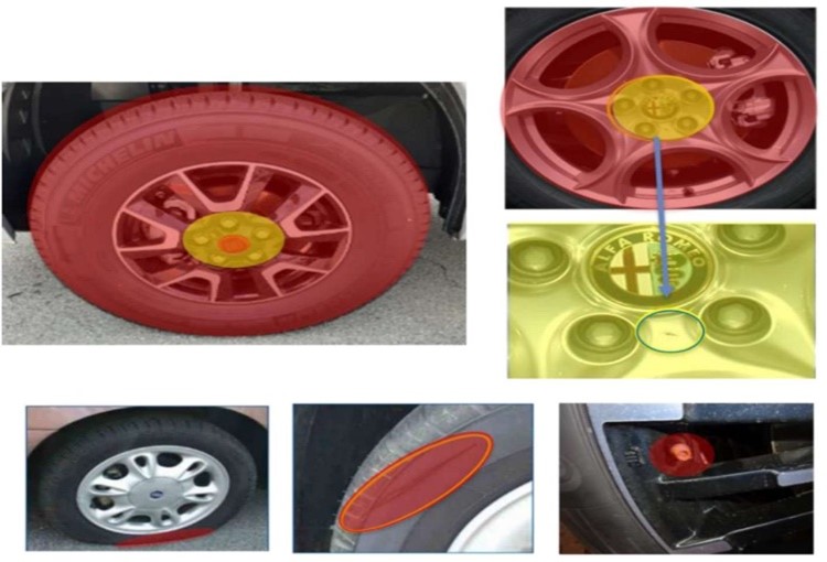 W przypadku felg i/lub kołpaków, w których środkowa część jest wypukła i odstaje, uszkodzenia wykryte w tym obszarze należy traktować jako uszkodzenia transportowe.