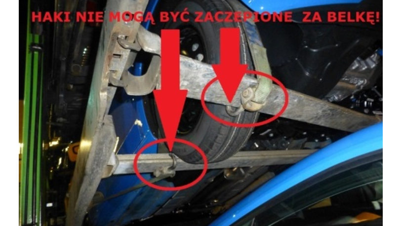 Aluminiowe belki powinny być wyposażone w uchwyty (blaszki) umożliwiające prawidłowe zamocowanie pasa. Brak takich uchwytów skutkuje zmniejszeniem ilości aut w ładunku